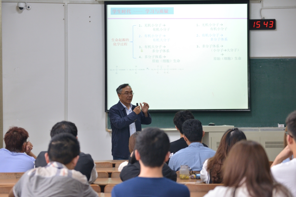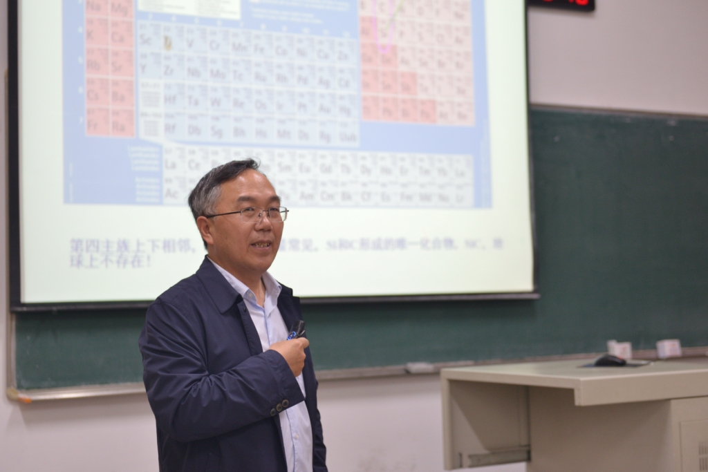 郭向云由自身學(xué)生時(shí)代的學(xué)習(xí)經(jīng)歷講起,強(qiáng)調(diào)了學(xué)習(xí)與質(zhì)疑的重要性;接著向同學(xué)們介紹了宇宙中古老的碳化硅,從一次實(shí)驗(yàn)室的意外被合成到現(xiàn)代實(shí)驗(yàn)中新穎的催化劑載體被應(yīng)用。郭老師分享了自己在學(xué)習(xí)科研中的感悟,引導(dǎo)同學(xué)們?cè)趯W(xué)習(xí)中敢于質(zhì)疑,探索實(shí)踐,堅(jiān)持不懈。