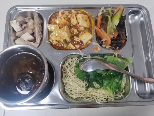 7、公司員工食堂:提供早中晚三餐;中餐和晚餐提供兩葷+兩素(自助)+燉湯+稀飯(自助),個人僅需支付5元/餐(其余費用由公司補貼支付)。