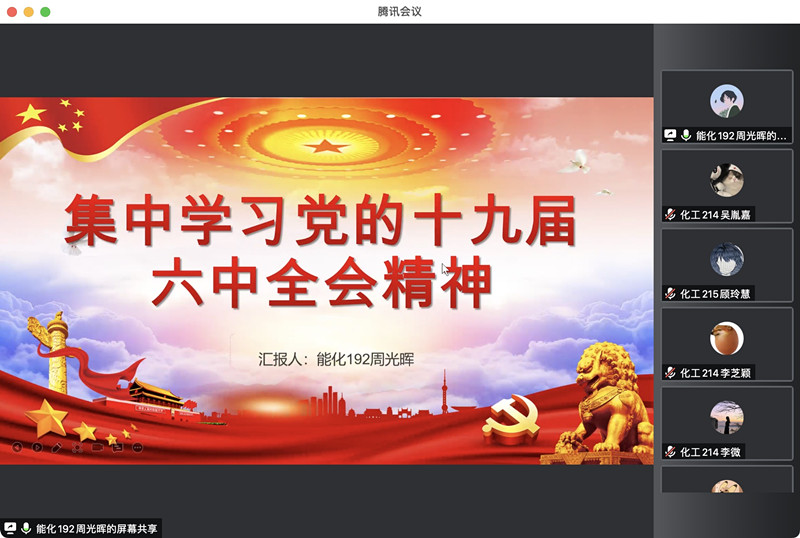 為深化我院青年對“兩個(gè)確立”的認(rèn)同與把握,深入學(xué)習(xí)貫徹黨的十九屆六中全會(huì)的精神,進(jìn)一步教育引導(dǎo)青年學(xué)黨史、知黨情、跟黨走,我院于4月6日18:30,開展青年講師團(tuán)系列線上宣講活動(dòng)。本次宣講由能化192周光輝主講。